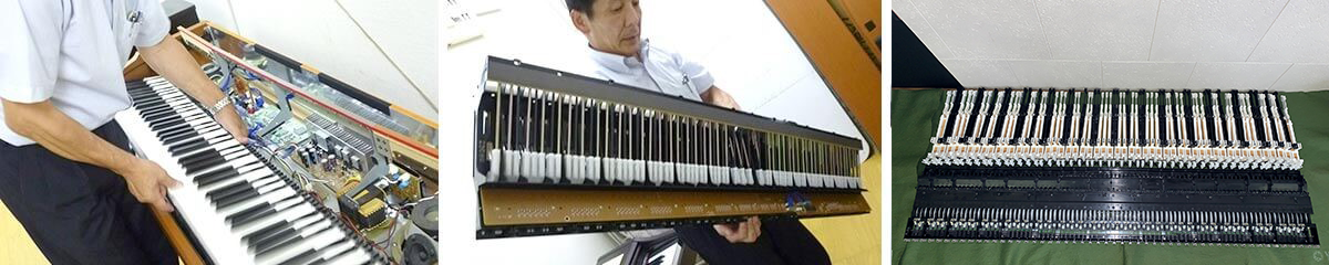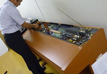 なぜ音が出ないのか、その原因にお客様が思い当たらないことは多々あります。私たちは今までの経験から、故障の原因を推測・究明し、電子ピアノとエレクトーンの修理とメンテナンスを行います。それは、長い経験があるからこそ対応できる、職人の仕事です。