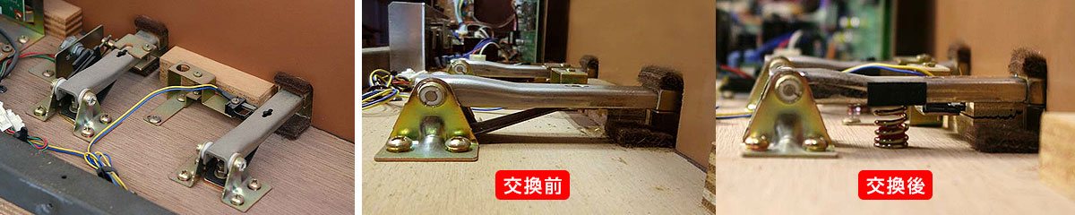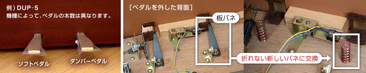 ヤマハの電子型アップライトピアノ「DUP」シリーズは、ペダルの中のスプリング(バネ)交換を必ず行います。