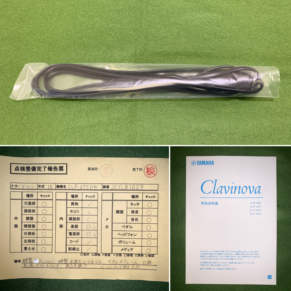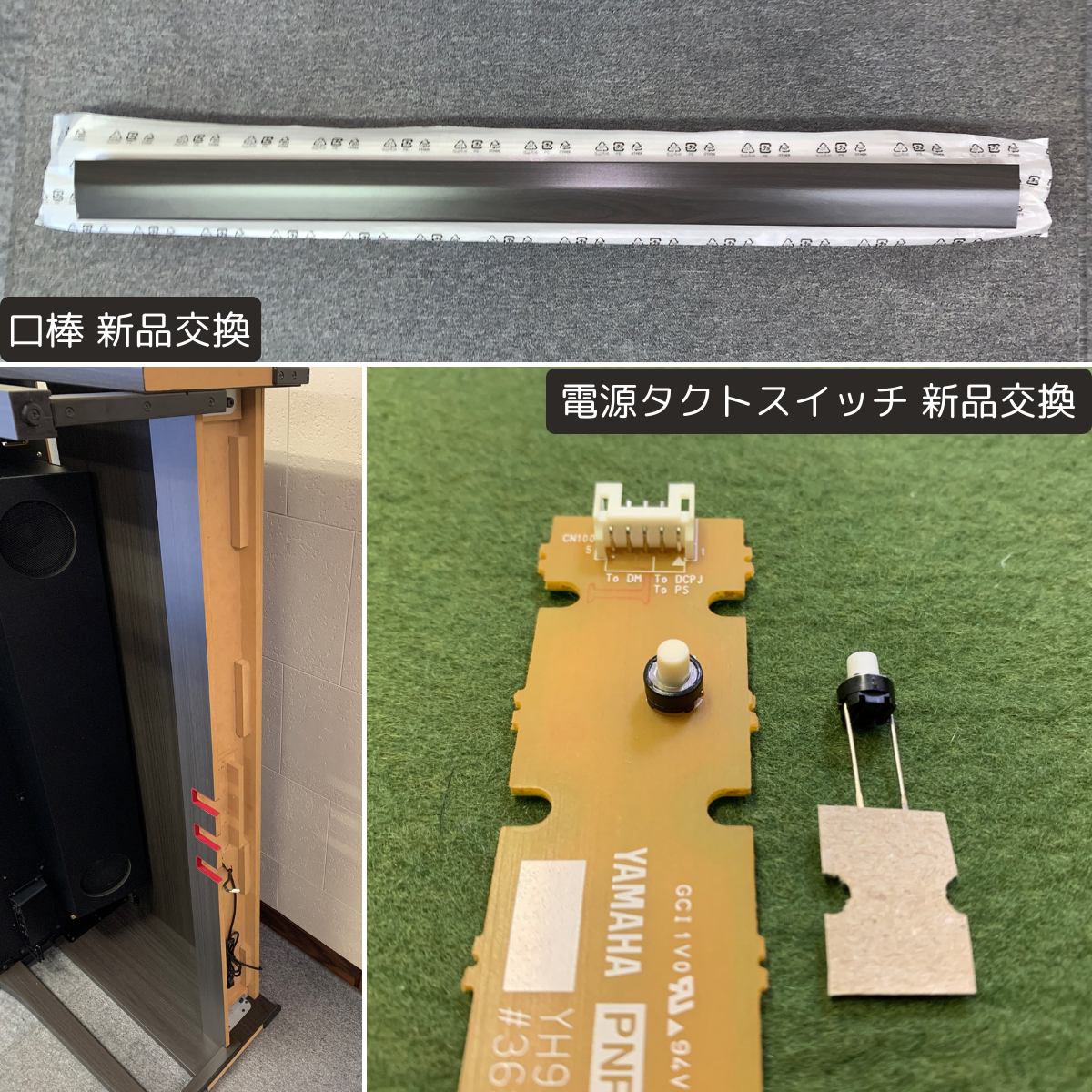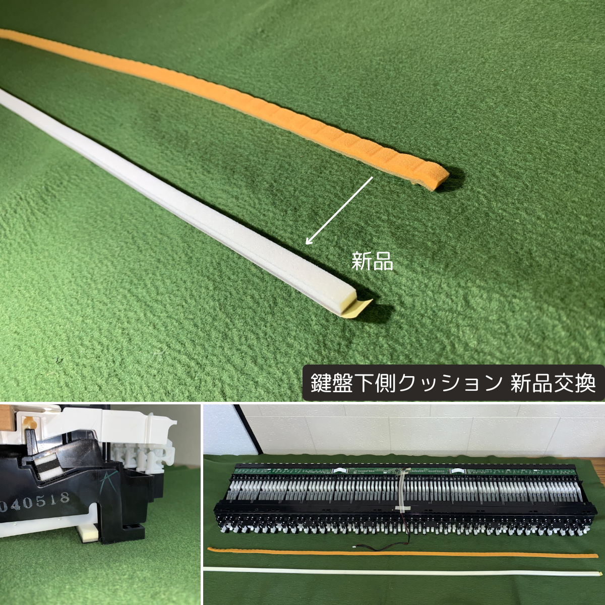 | 鍵盤 | ・全鍵盤脱着清掃 ・可動部グリス塗り ・鍵盤接点ゴム&接点シート新品交換 ・ストッパーL(鍵盤下側クッション)新品交換 |