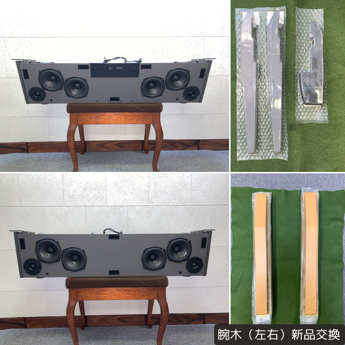 腕木(左右)、ストッパーU(上下)、拍子木(大)上(左側)下(右側)、本体サイドカバー(左右)、スピーカーカバー(左右)、DAC1Aシート(修理品)、DJACKシート、ENC1,ENC2シート、EXPペダル(左右)、椅子座面シート