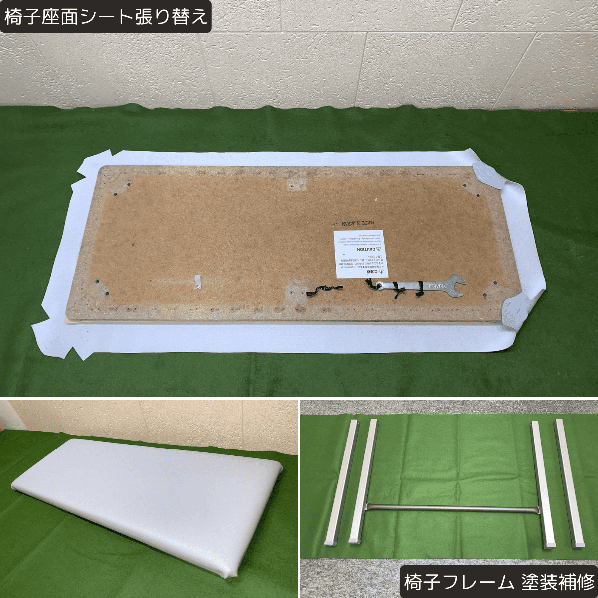 | その他 | ・電源コード清掃 ・椅子キャップ4箇所新品交換 ※画像有り ・椅子座面シート張り替え ※画像有り ・椅子フレーム:塗装補修 ※画像有り ・バージョンアップ済み Ver.1.92 ・各機能正常確認 |