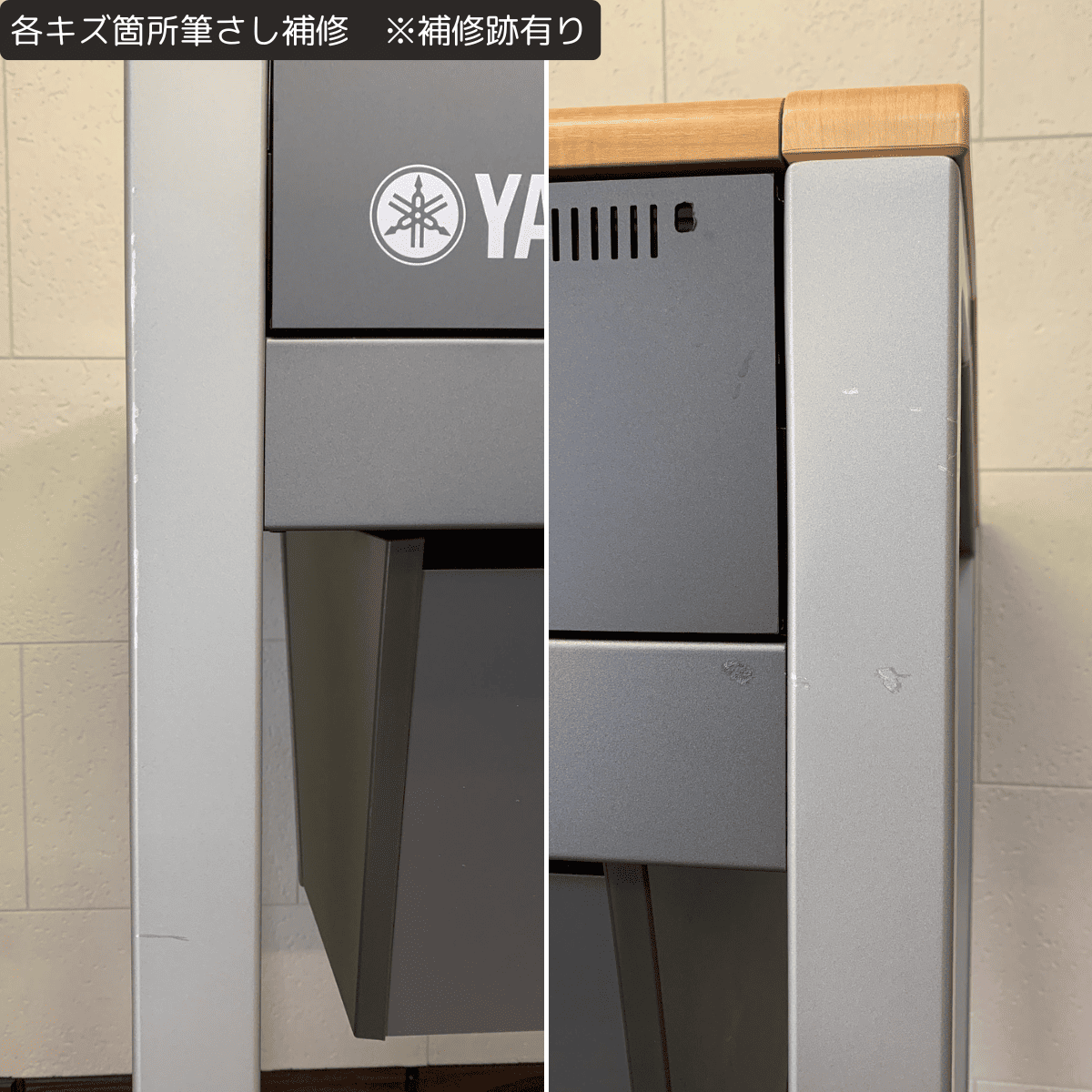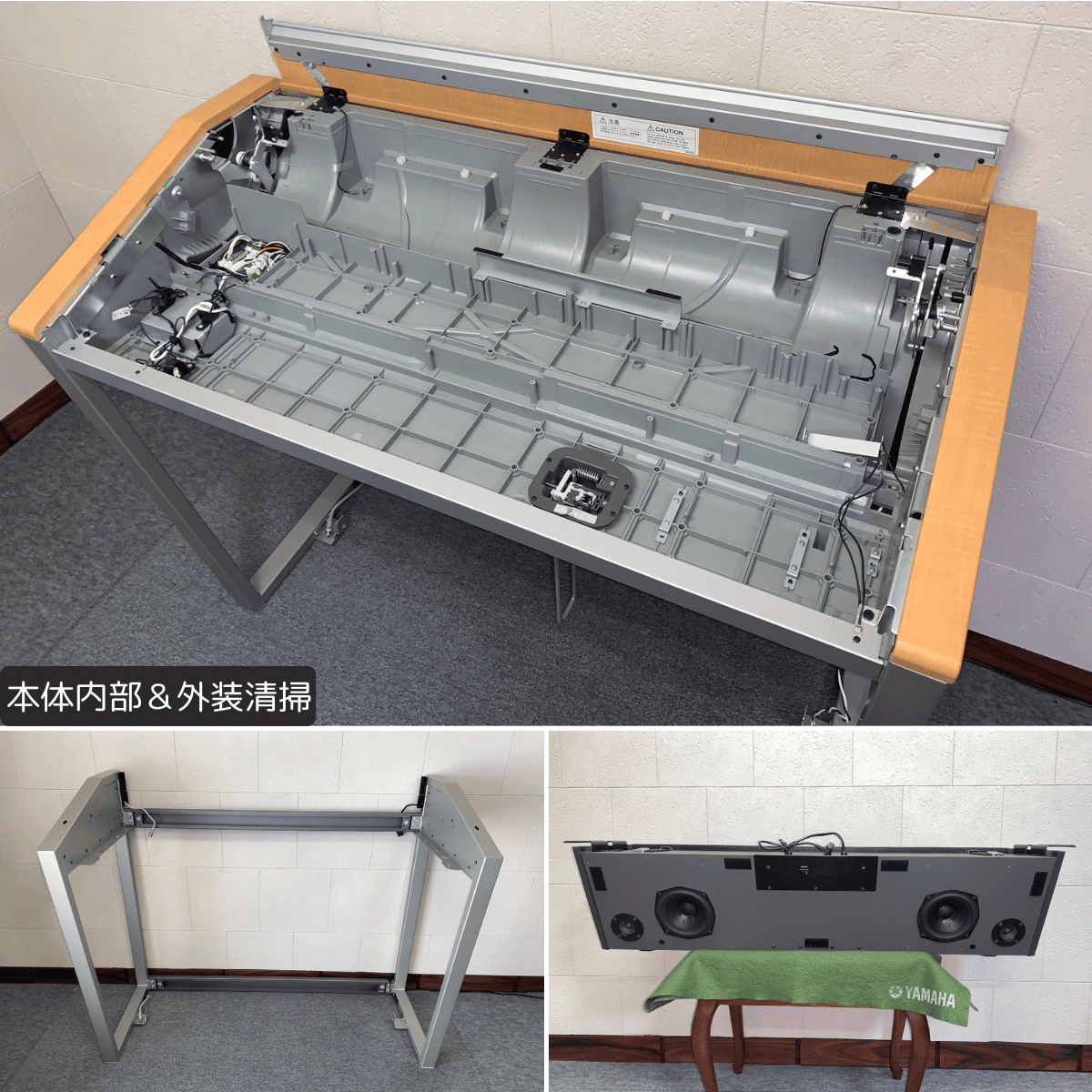 | 本体 | ・本体内部&外装清掃 ・デジタルボックス内部清掃 ※画像有り ・イヤホンジャック接点洗浄剤注入 ・ENC1/ENC2シート新品交換 ※画像有り ・腕木(右)交換 ※画像有り ・鍵盤蓋:塗装補修 ※画像有り ・本体フレーム各キズ箇所筆差し補修 ※画像有り |