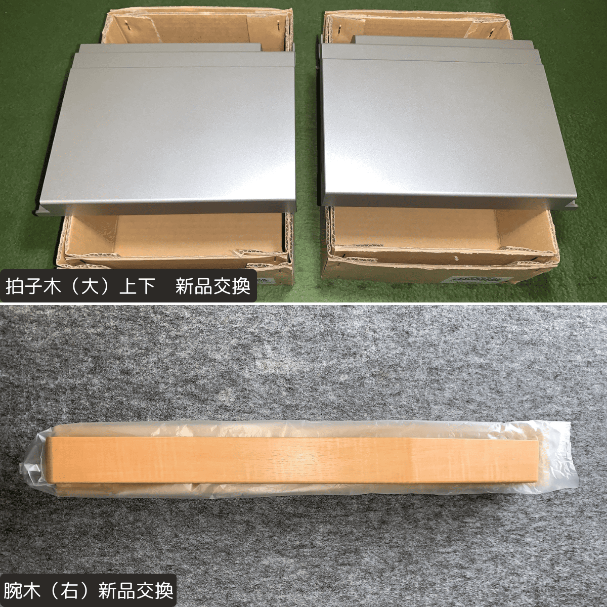 ストッパーU(上下)、拍子木(大)上下、ENC1/ENC2シート、腕木(右)、EXPペダルマット、椅子座面シート張替